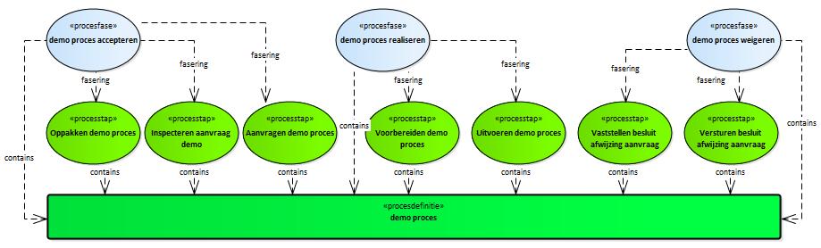 Het proces om een demo aan te vragen en uit te voeren. Het Demo proces beschrijft een eenvoudig proces dat uit twee fases bestaat. Dit zijn de twee fases: demo proces accepteren en demo proces realiseren