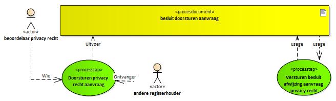 Het besluit gebeurt met de actie Doorsturen privacy recht aanvraag[b/] wanneer blijkt dat de gegevens van een andere organisatie zijn.
