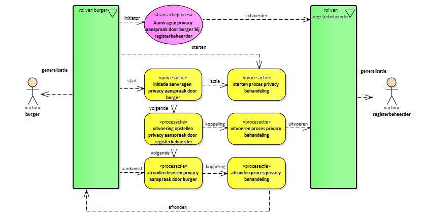 De initiatie aanvragen privacy aanspraak door burger, waarmee de transactie begint.