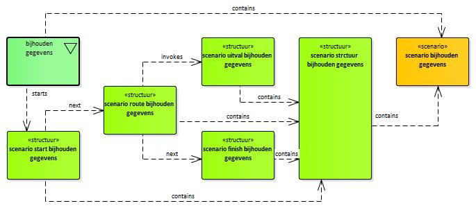 Het diagram toont de structuur van een scenario uit de analyse voor de BRP.