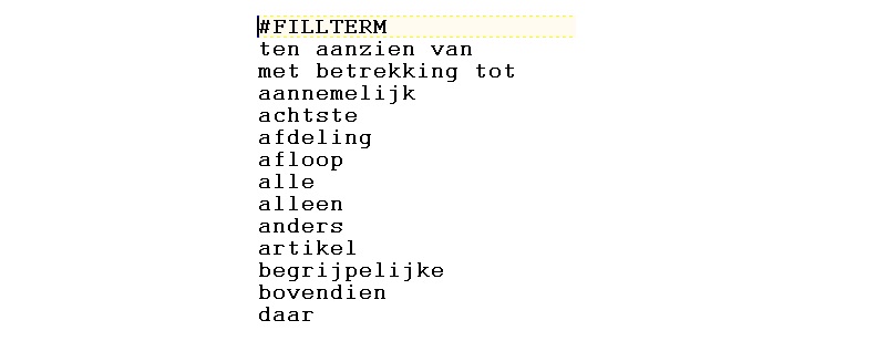De definitie zorgt ervoor dat de tekst gemarkeerd wordt als een vul woord.